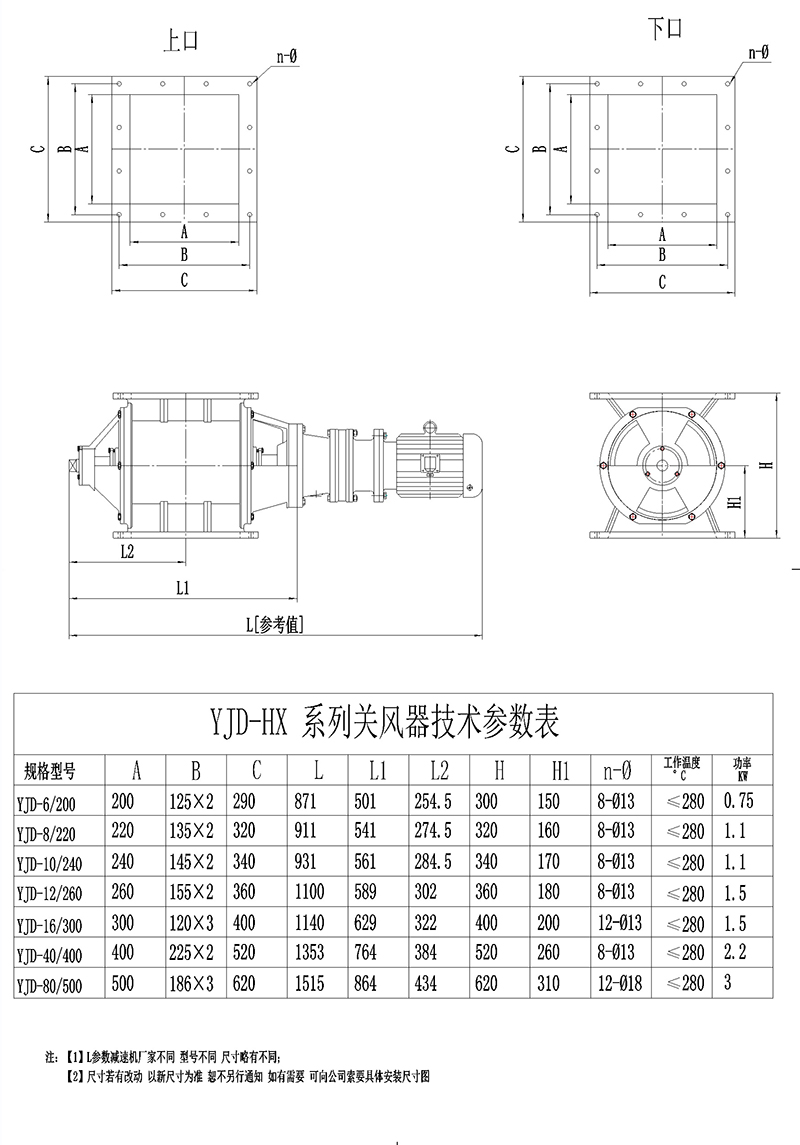 YCD型卸料器結(jié)構(gòu)緊湊,造型美觀,使用方便。運(yùn)轉(zhuǎn)平穩(wěn),噪音低。由于軸承、齒箱離開(kāi)殼體一段距離,對(duì)于高溫、潤(rùn)滑都有較大改善。是為環(huán)保、冶金、化工、糧食、食品等工業(yè)部門(mén)廣泛應(yīng)用。除塵設(shè)備排灰、送風(fēng)和其它設(shè)備給料的主要設(shè)備,適用于粉狀物料和顆料狀物料。 YJD星型卸料器用于安裝在負(fù)壓下工作的卸料器的排料口處,上部接受卸料器排出的物料,依靠旋轉(zhuǎn)的葉輪起著輸送物料的作用,又擔(dān)負(fù)著密封的作用,防止氣力輸送過(guò)程中從排料口吸入空氣,保證卸料器的正常排料。